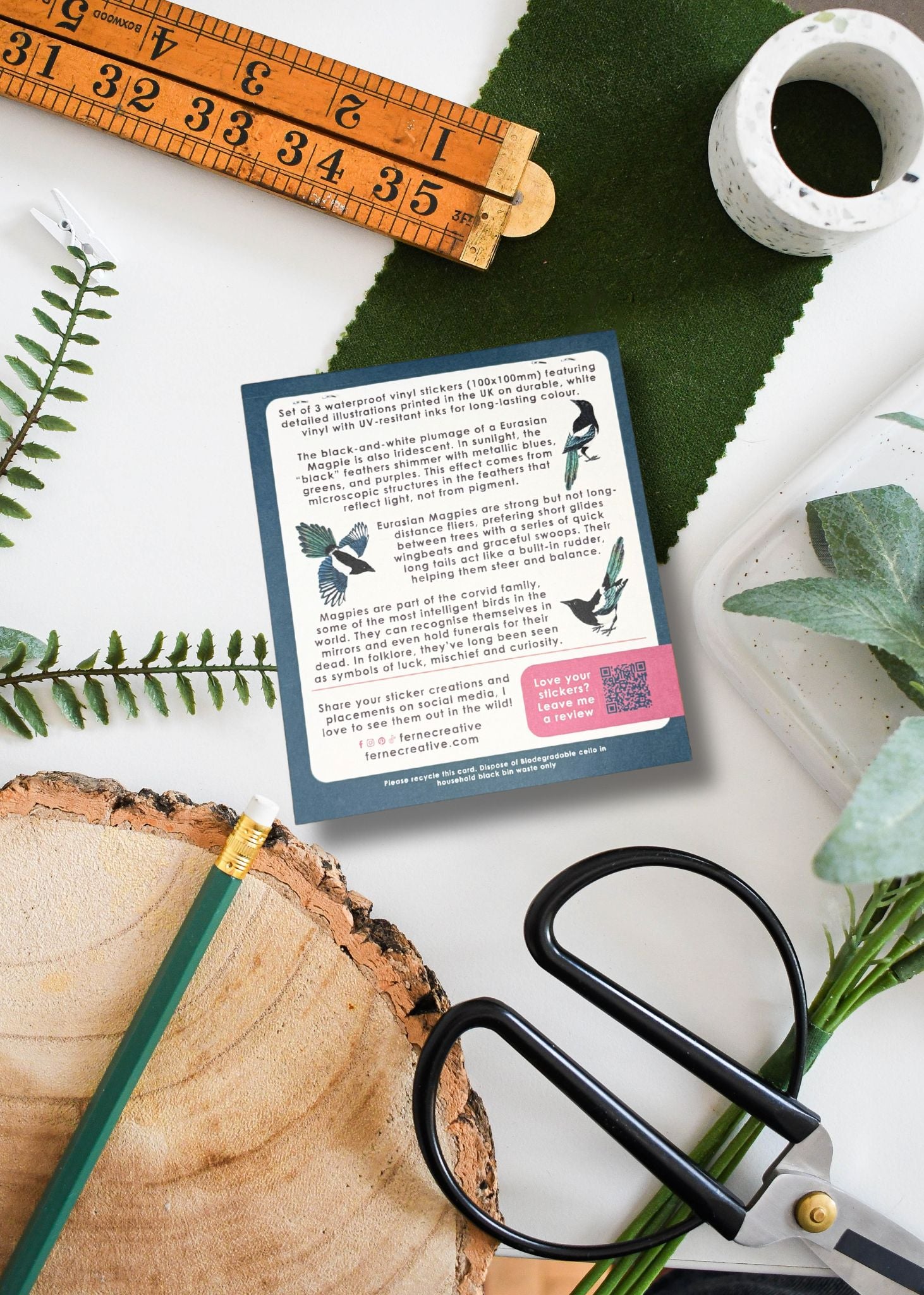 Feiern Sie den Charme und die Intelligenz eines der faszinierendsten Vögel der Natur mit unserem Magpie-Sticker-Bundle – einem Bestseller-Trio mit drei einzigartigen illustrierten Designs. Jeder gestanzte Vinyl-Sticker fängt das auffällige schwarz-weiße Gefieder, die bunten Schwanzfedern und die ausdrucksstarke Persönlichkeit der Elster ein. Dieses Magpie-Sticker-Bundle ist ein Muss für Vogelliebhaber und Kunstliebhaber gleichermaßen und perfekt zum Personalisieren Ihrer Wasserflaschen, Laptops, Notizbücher oder jedes anderen Raums, der einen Hauch von Vogel-Eleganz braucht.