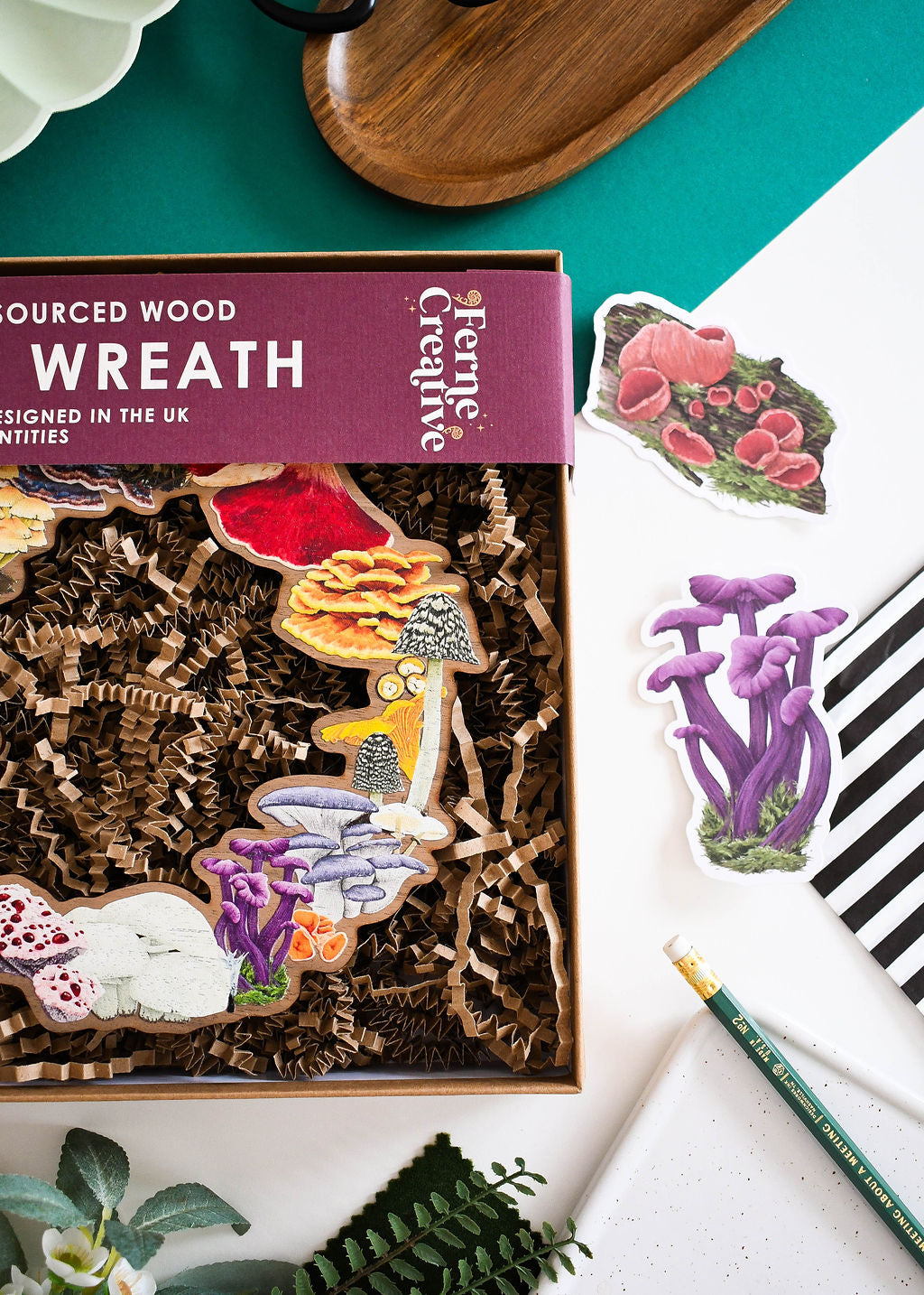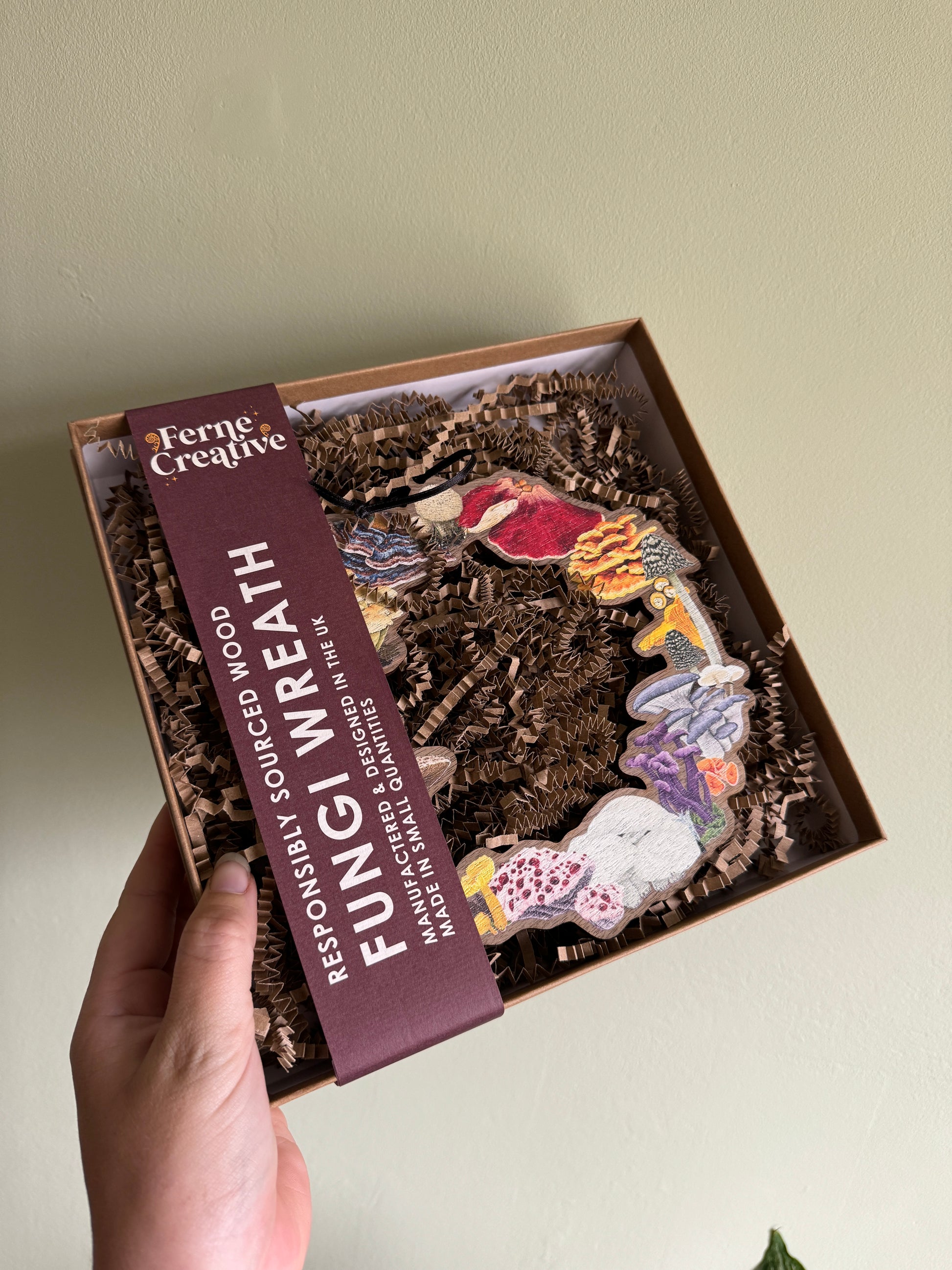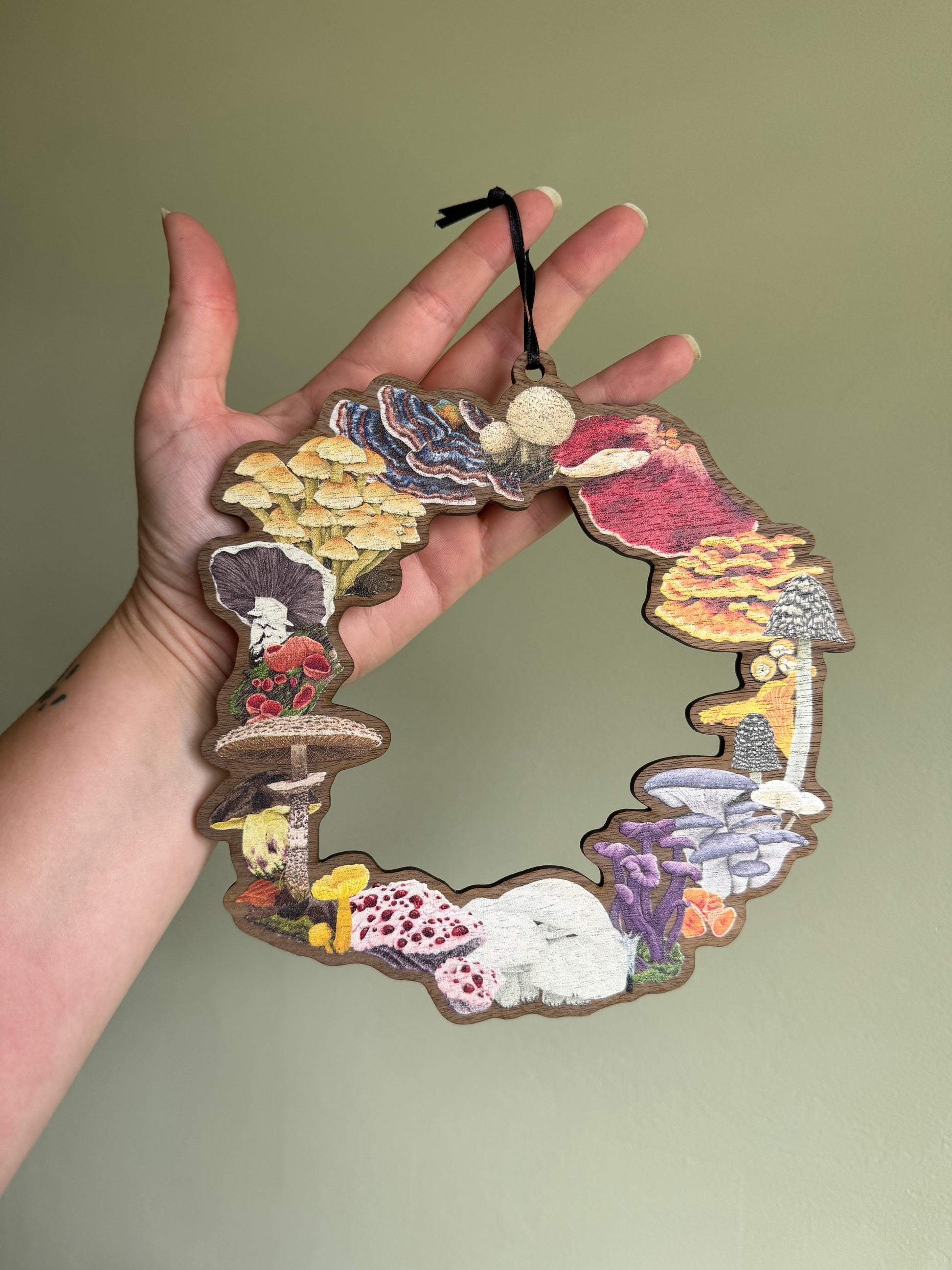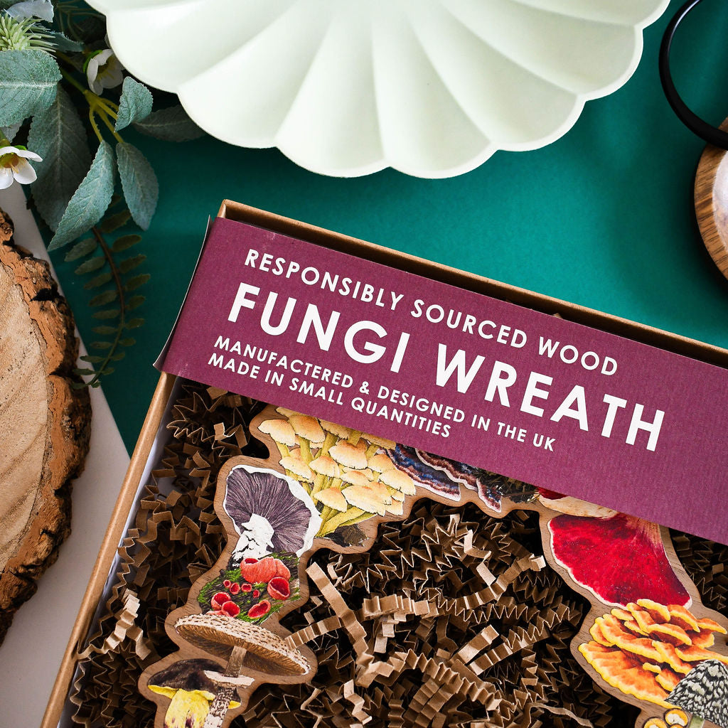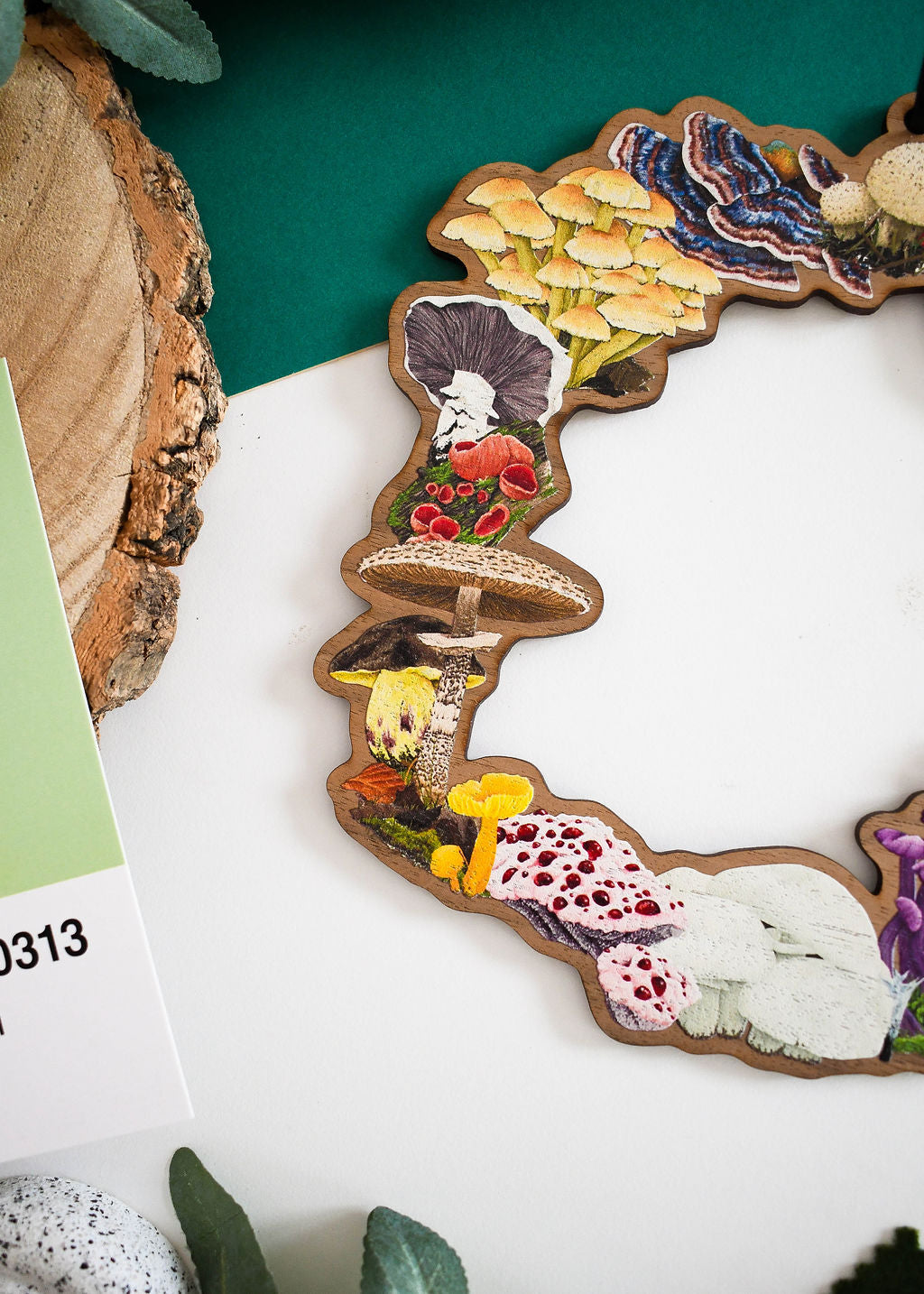 This wooden fungi wreath is stunning, looks amazing hanging up!