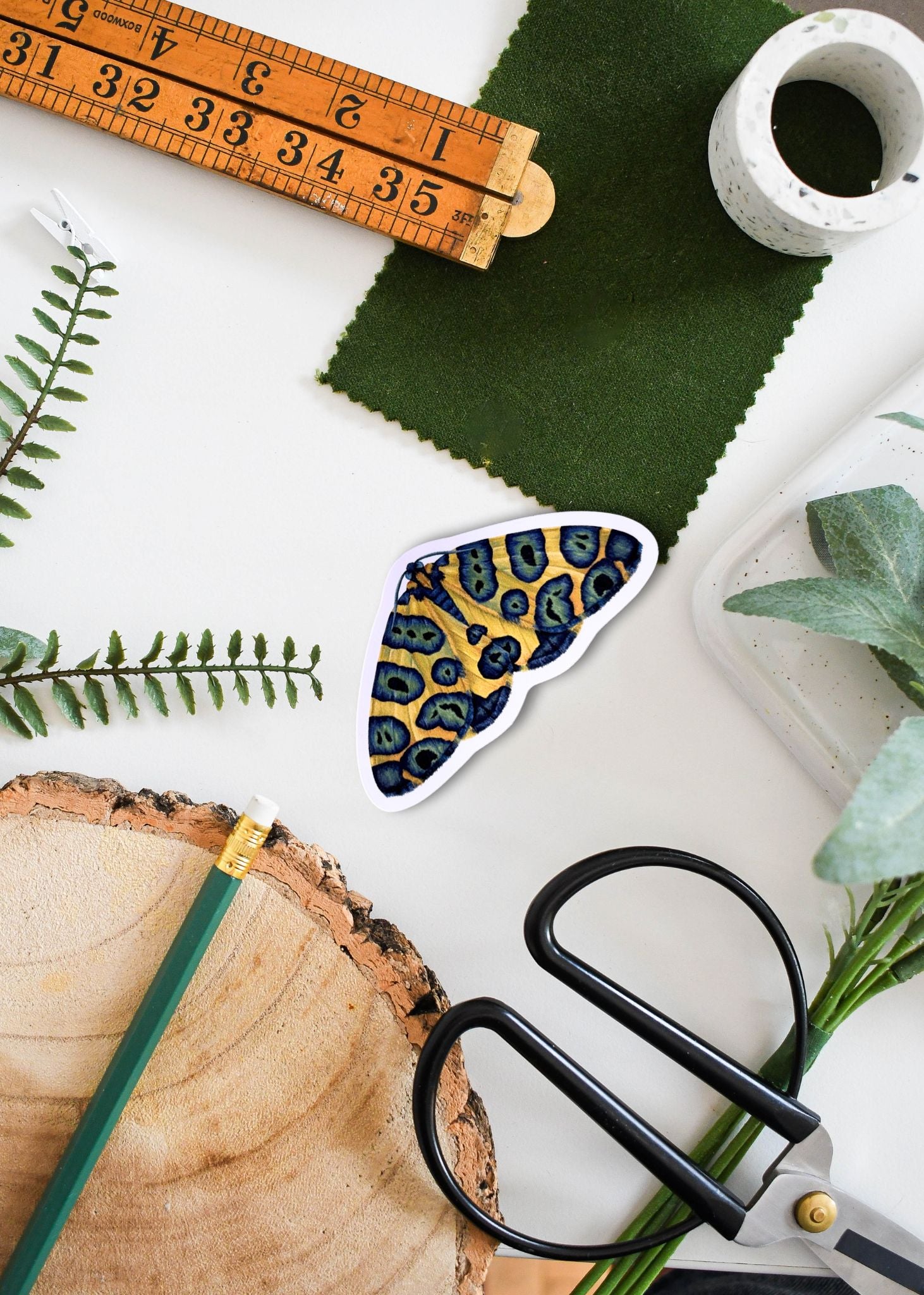 This 80x70mm vinyl sticker features a hand-drawn illustration of the Leopard Moth, created as part of our RHS Show Garden at the Malvern Spring Show, in collaboration with Sprouts of Bristol. It was one of many species highlighted to show the intricate, often unseen layers of rainforest life.
